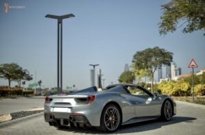 The embodiment of automotive excellence takes form in the Ferrari 488 Spider—a confluence of artistic design and unparalleled performance that marries the elegance of a timeless Italian masterpiece with the heart-pounding power of a precision-engineered supercar. Propelled by a meticulously crafted 3.9-liter twin-turbocharged V8 engine, the 488 Spider delivers an exhilarating 660 horsepower and a remarkable 760 Newton-meters of torque. Its acceleration from 0 to 62 miles per hour is achieved in a mere 3 seconds, and it achieves a top speed of 203 miles per hour. Every curve, every acceleration, every pulse of energy coalesces seamlessly within this automotive work of art, epitomizing Ferrari’s legacy of innovation and passion.